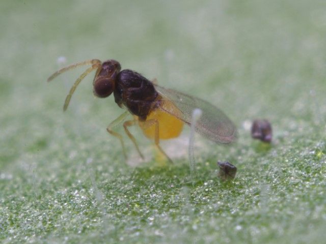 Encarsia formosa är en parasitstekel som effektivt bekämpar vita flygare (mjöllöss) på växter. Passar både inomhus, växthus och trädgård. Fri frakt.