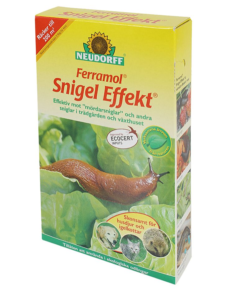 Snigel Effekt (Ferramol) är ett miljövänligt granulat som effektivt bekämpar sniglar utan att skada andra djur, växter eller naturen. Produkten är godkänd för ekologisk odling och bryts ned till naturliga växtnäringsämnen (järn och fosfat).