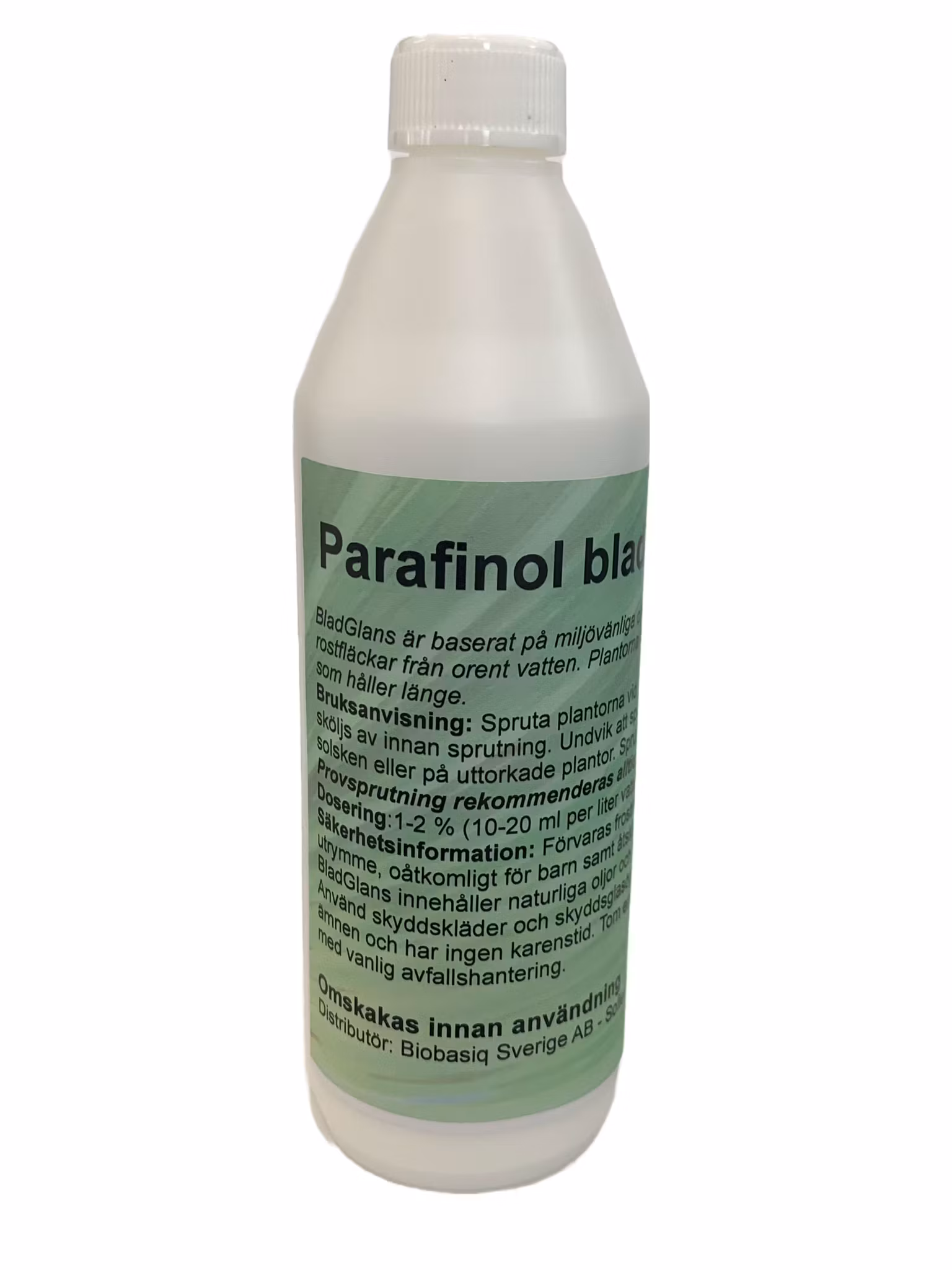 Parafinol Bladglans ger en ren, blank bladytan och minskar damm och beläggningar. Enkel att använda på krukväxter och prydnadsväxter. Fri frakt.