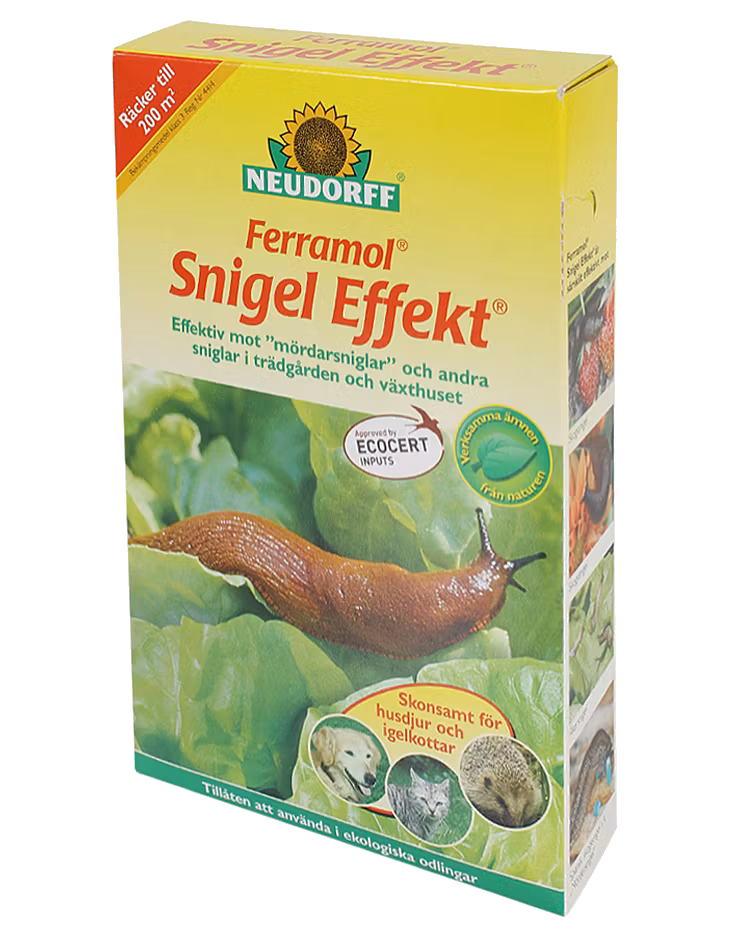 De senaste åren har åkersniglar och framför allt mördarsniglar blivit ett stort problem i många trädgårdar. Snigel Effekt (Ferramol) är ett miljövänligt granulat som effektivt bekämpar sniglar utan att skada andra djur, växter eller naturen. Produkten är godkänd för ekologisk odling och bryts ned till naturligt förekommande växtnäringsämnen (järn och fosfat).
