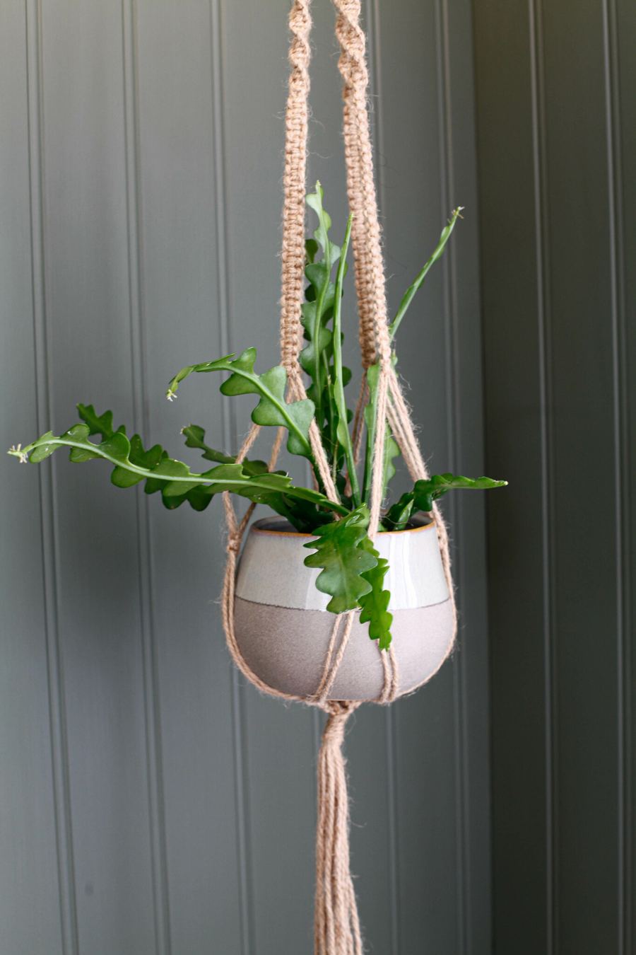 Belle Ampel Jute Natur 115 cm är en stilren och naturlig ampel i jute som ger ett mjukt och jordnära uttryck i hemmet. Den är 115 cm lång och passar perfekt för krukor med en diameter på cirka 12 cm. Ampeln är enkel att hänga upp och blir en fin inredningsdetalj i fönster, på balkong eller i andra rum.