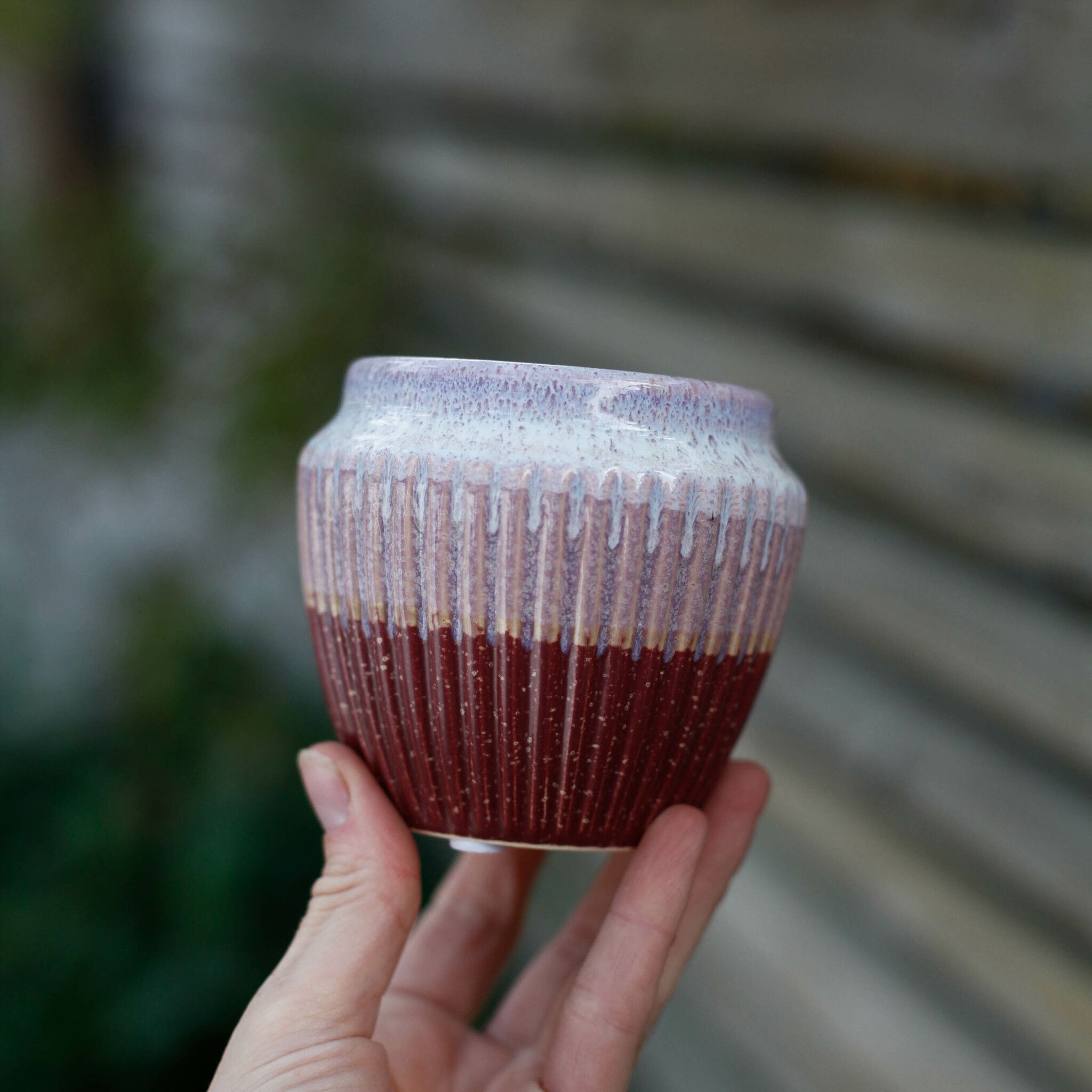Minikruka Frida är perfekt för sticklingar och kaktusar. Passar 6 cm krukor. Finns i nyanser av brunt, rosa, grönt och sand. Köp hos Klorofyllverket.se.