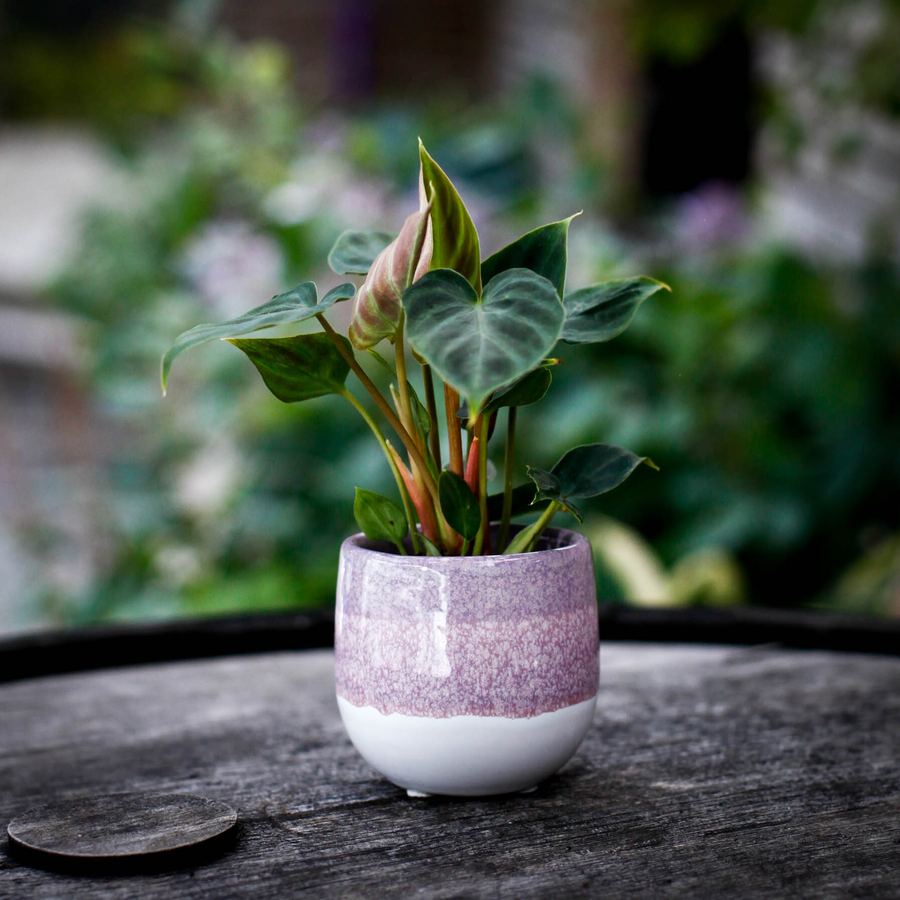 Denna minikruka är anpassad för 6 cm krukväxter och passar perfekt för sticklingar, suckulenter och kaktusar. De lila nyanserna ger ett mjukt och dekorativt uttryck som lyfter mindre växter.