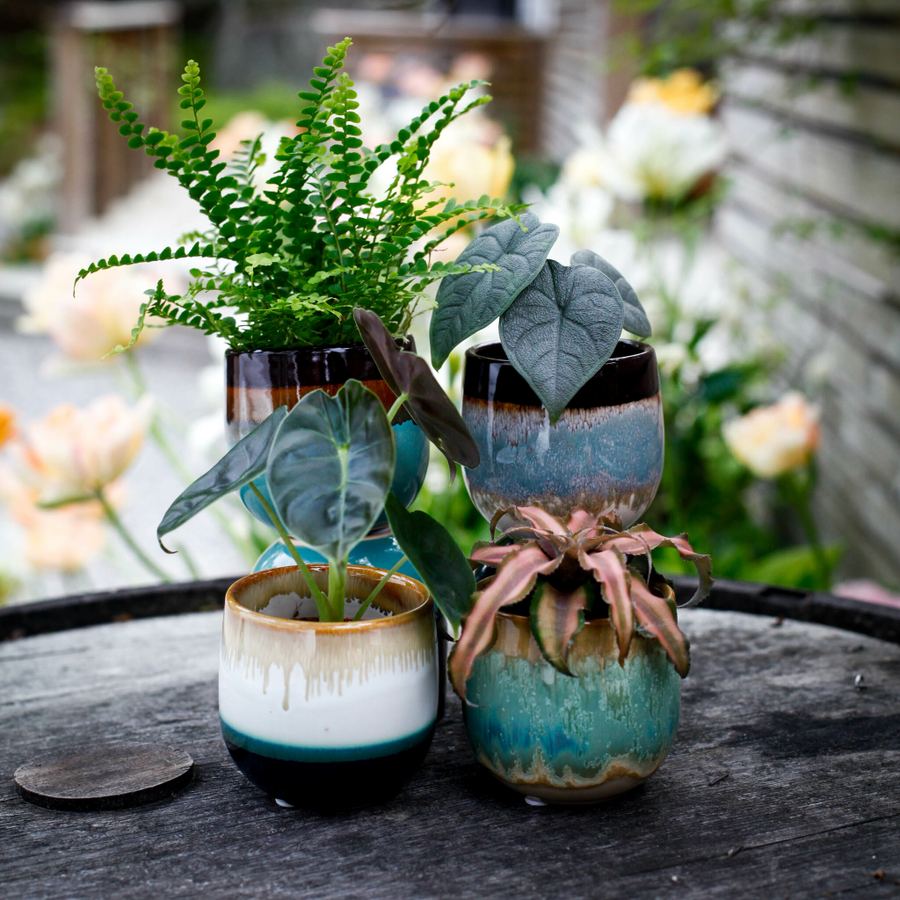 Små krukor, stora möjligheter! Perfekta för 6 cm växter. Unika färger i sand, blått, grönt och brunt.