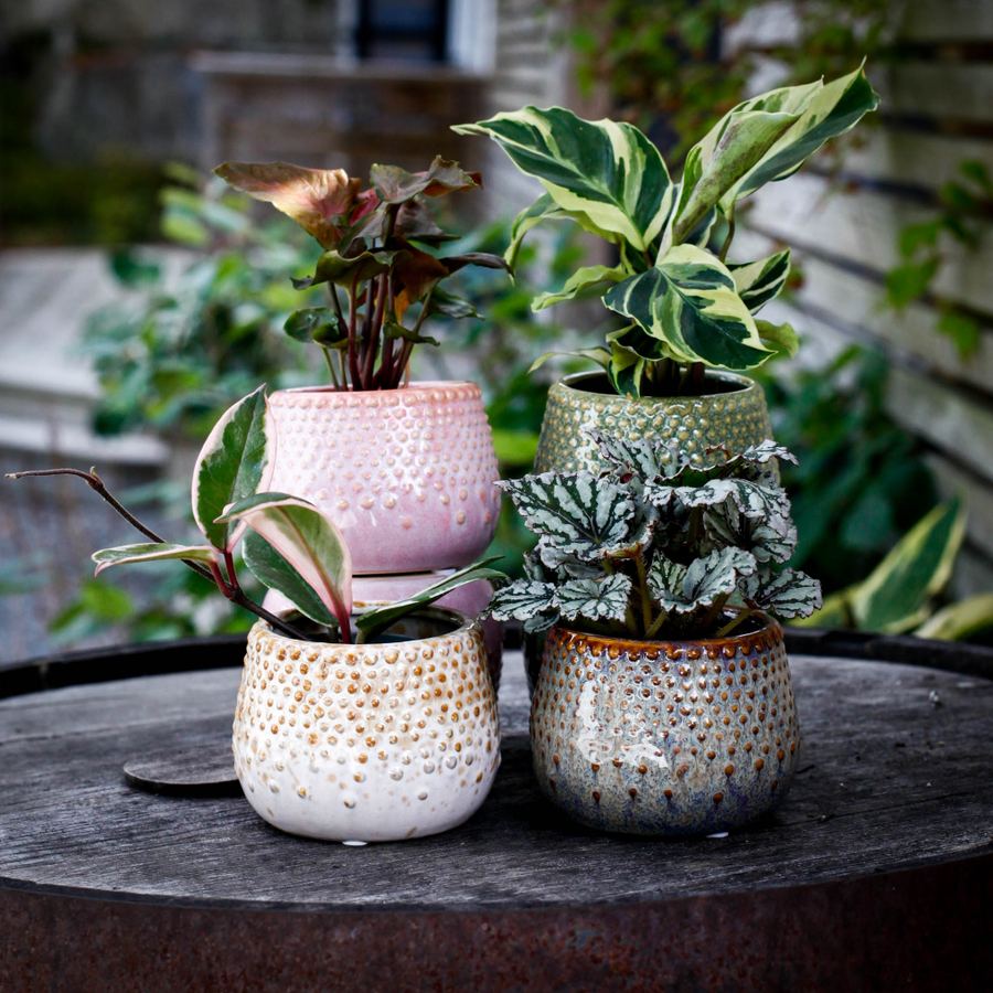 Denna minikruka med prickigt mönster är ett dekorativt val för dig som söker en liten kruka till sticklingar, suckulenter eller kaktusar. Det något rymligare formatet gör att krukan passar både 6 cm och 7 cm krukväxter, vilket ger extra flexibilitet för små växter.