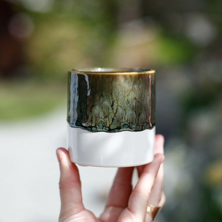 Minikruka i keramik för 6 cm växter. Perfekt för sticklingar och suckulenter. Unika färgvariationer i vitt och grönt. Passar alla hem.