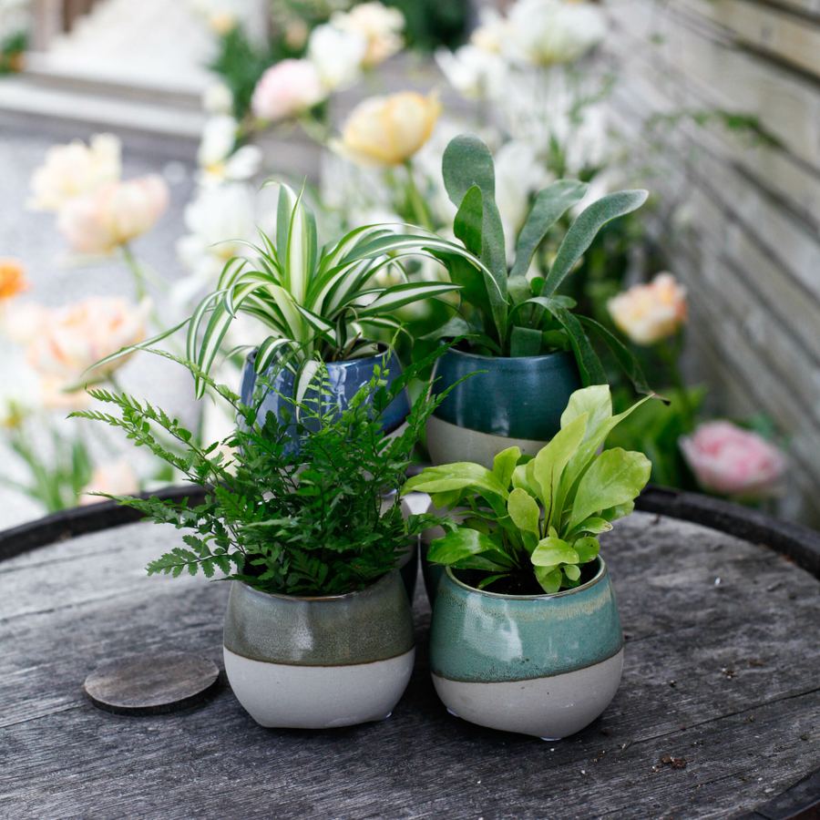 Denna minikruka är anpassad för 6 cm krukväxter och passar perfekt för sticklingar, suckulenter och kaktusar. De blå och gröna färgkombinationerna ger ett fräscht och levande uttryck som kompletterar mindre växter fint.