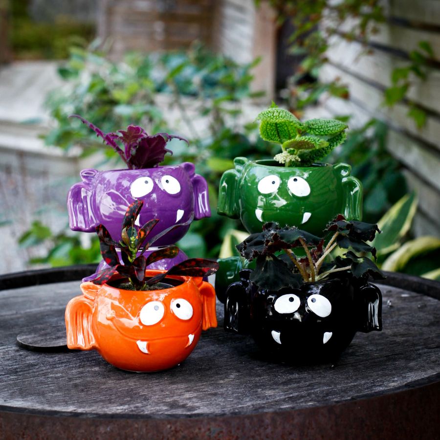 Lekfull minikruka i fladdermusform, perfekt för sticklingar och små växter. Finns i orange, svart, grön och lila. Unik design i keramik/porslin.