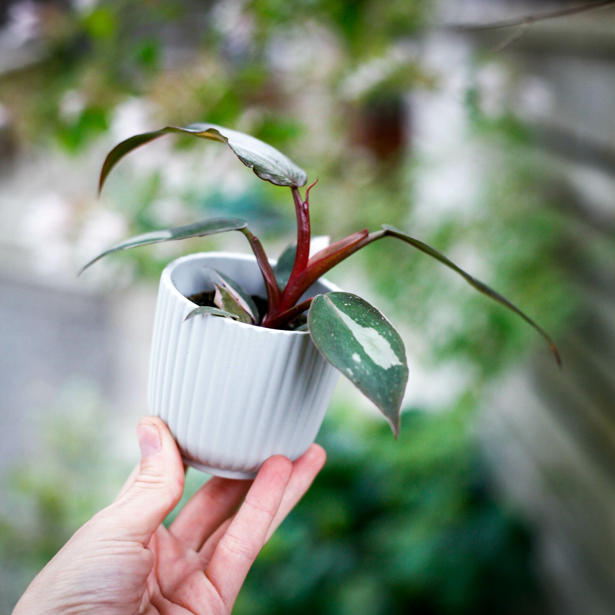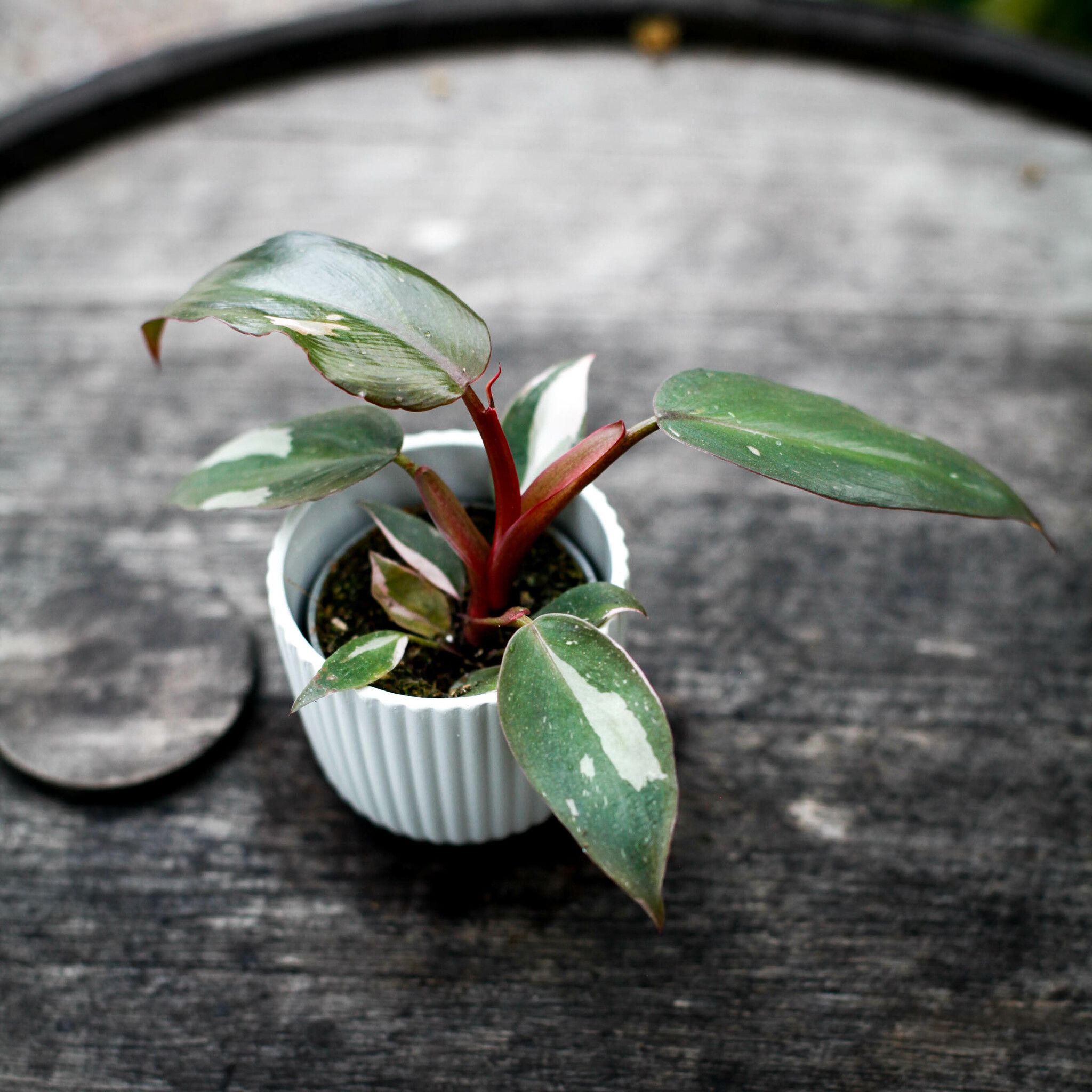 Philodendron 'Pink Princess' i vit kruka: Trivs bäst i indirekt ljus och hög luftfuktighet. Perfekt för att skapa en grön oas. Kruka ingår! 🌿