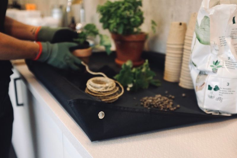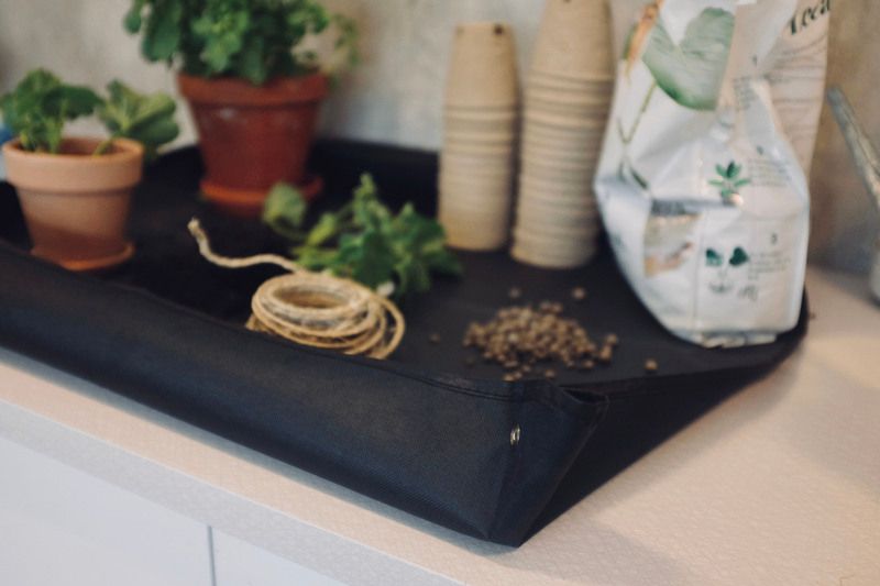 Använd planteringsmattan på köksbänken eller andra arbetsytor för att samla upp jord och växtrester vid omplantering och sådd.
