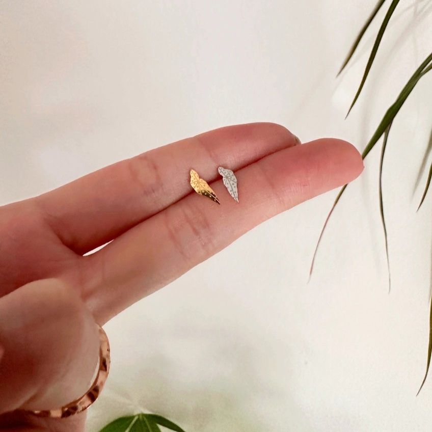 Vackra allergivänliga örhängen i rostfrittstål i form av Begonia Angelwings.