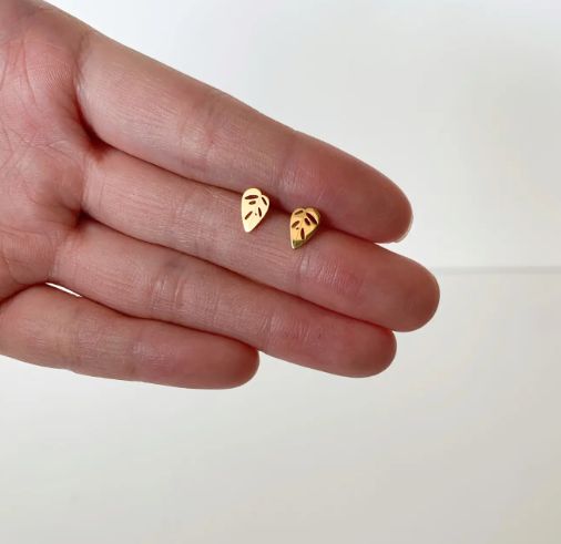 Tidlösa örhängen för växtälskaren i 18k guldplätering, formade som Monstera adansonii blad. Perfekt present i glasburk och sticklingstation.