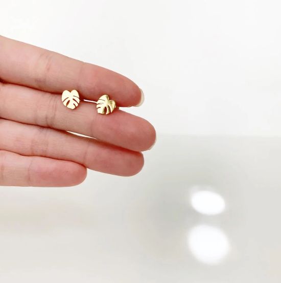 Vackra allergivänliga örhängen i 18k guldplädering i form av Monstera Deliciosa.