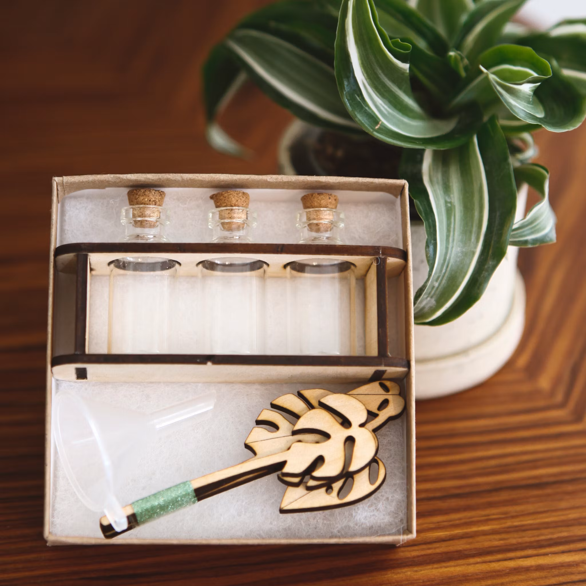 Små doftspridare för eteriskoljor set som även funkar som en mini sticklingsstation. Levereras i en fin presentask och är en perfekt present för växtälskaren!