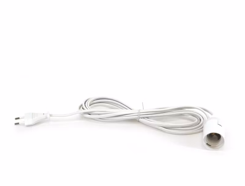 Vit lampsladd E27, 4 meter lång. För växtbelysning inomhus, max 60 W. Ojordad lampsladd utan strömbrytare.