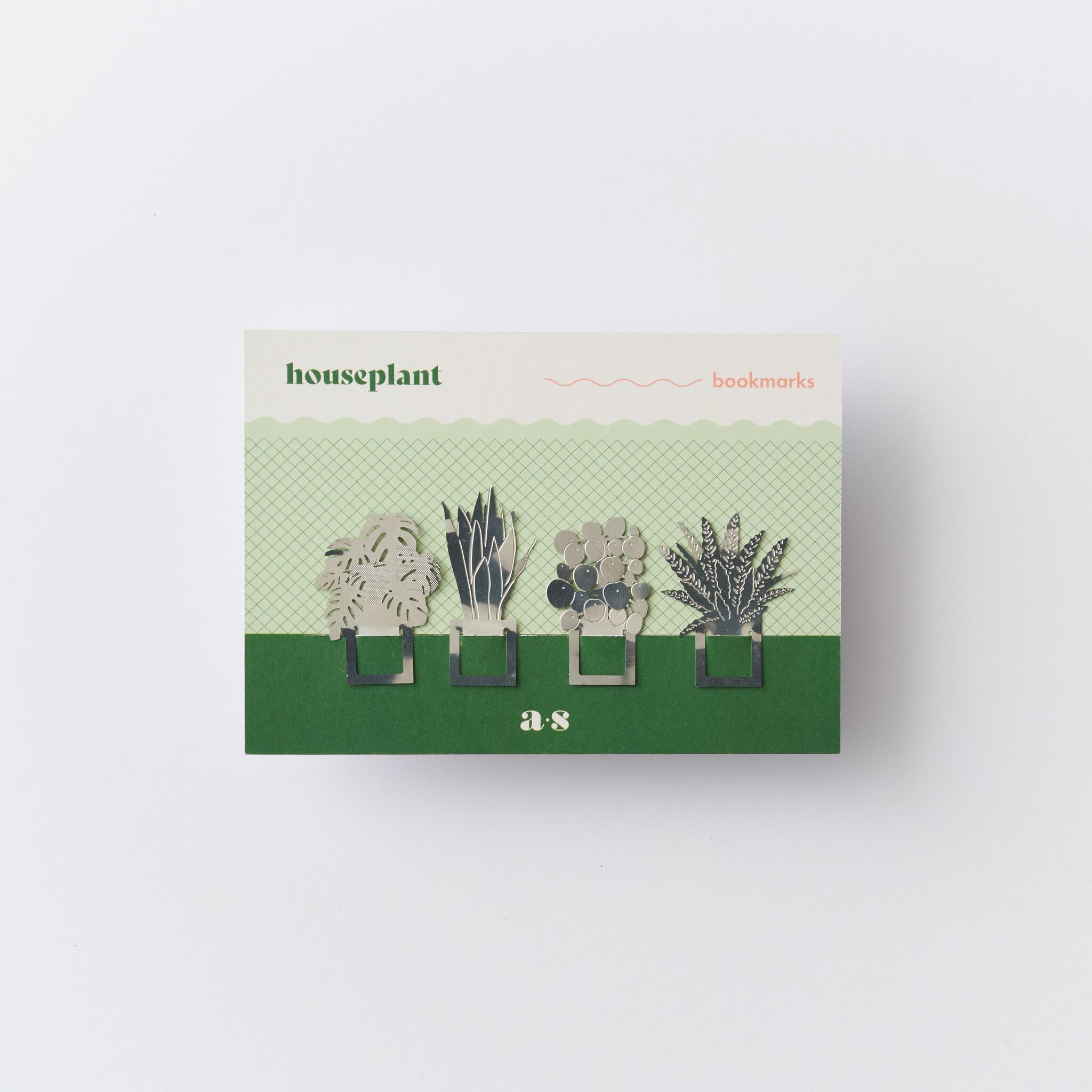 Vi vet hur svårt det kan vara att välja bland alla underbara växter, därför kommer våra krukväxtbokmärken i en set om fyra: Monstera delicious, Pilea peperomioides, Calathea och en Sansevieria.