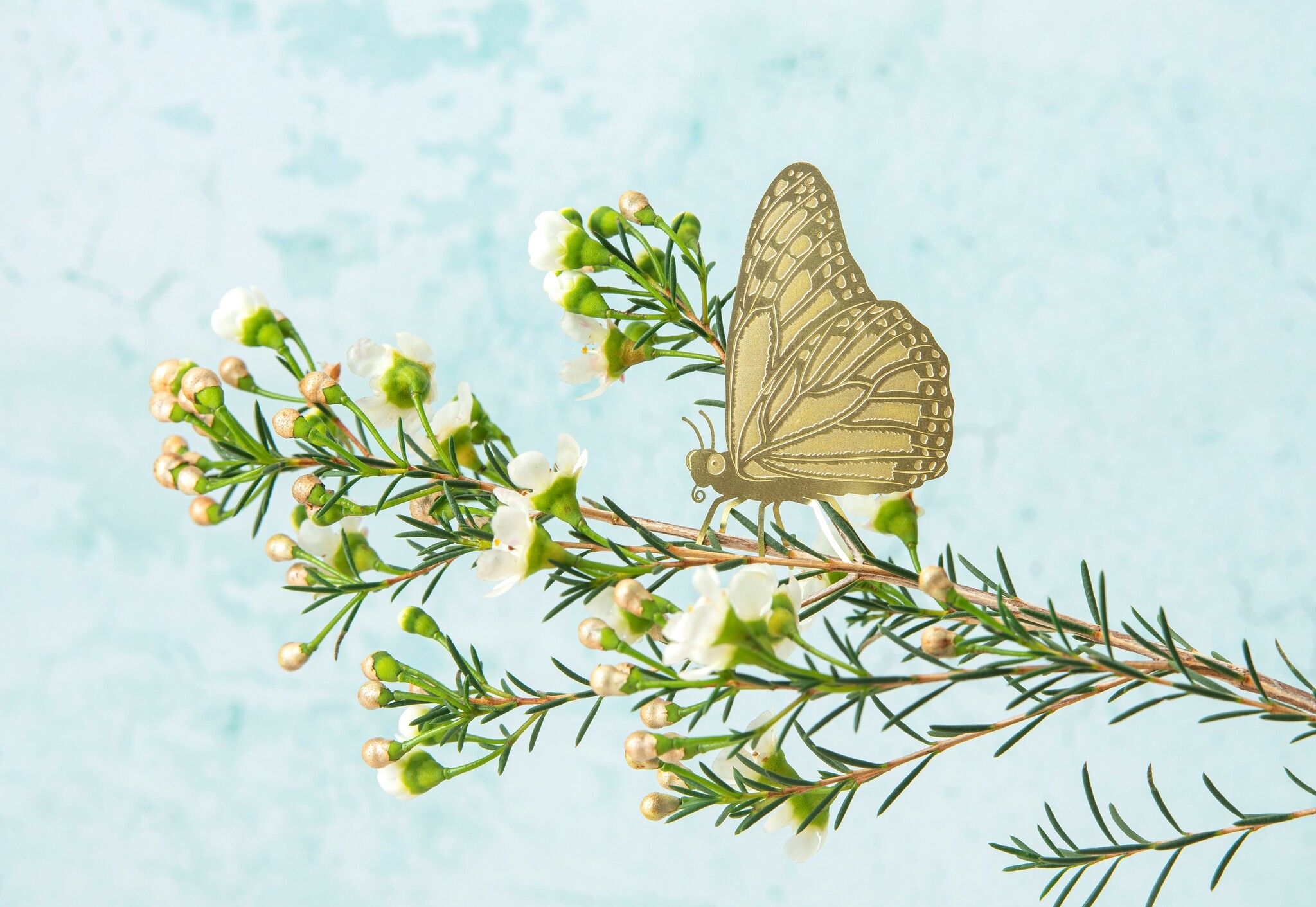 Genom att försiktigt låta benen klämmas åt kan fjärilen vila på stjälkarna på dina krukväxter eller varför inte i en vacker blombukett.