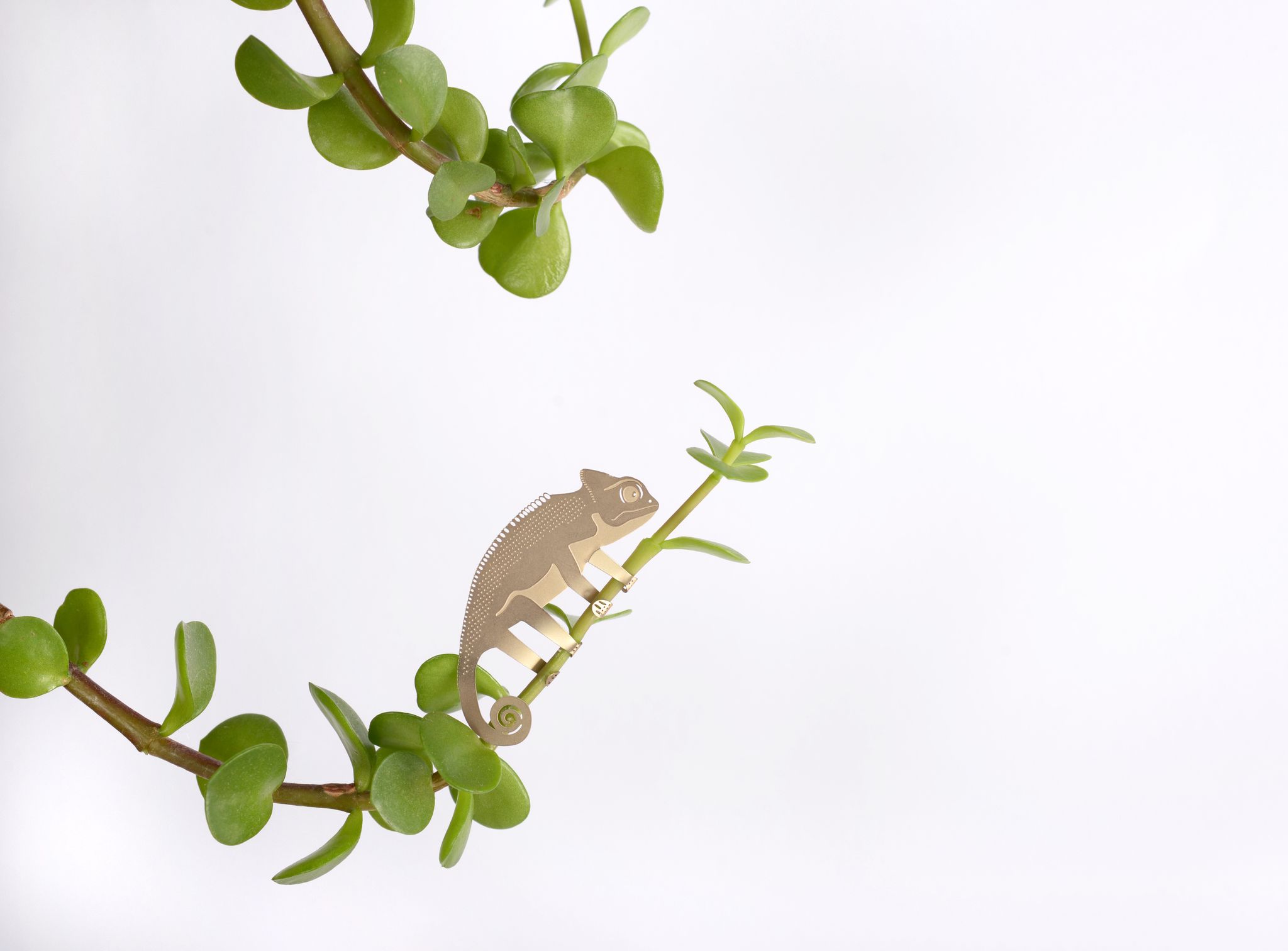Denna coola kameleont klämmer sig fast på dina krukväxters stjälkar.