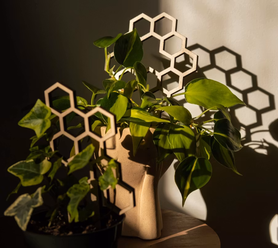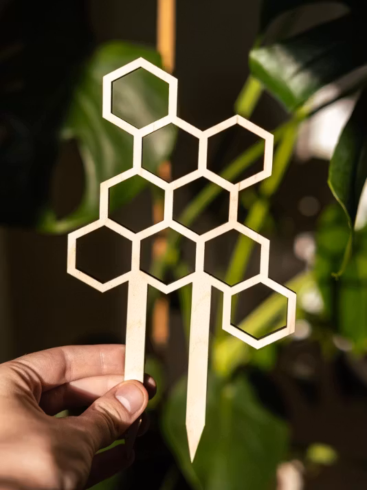 Ett elegant litet växtstöd i hexagonmönster inspirerad av bivaxkakor. Designad för att ge stöd till dina klätterväxter och nyrotade sticklingar.